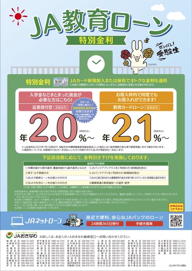JAおきなわのお得な教育ローンをぜひご利用ください。