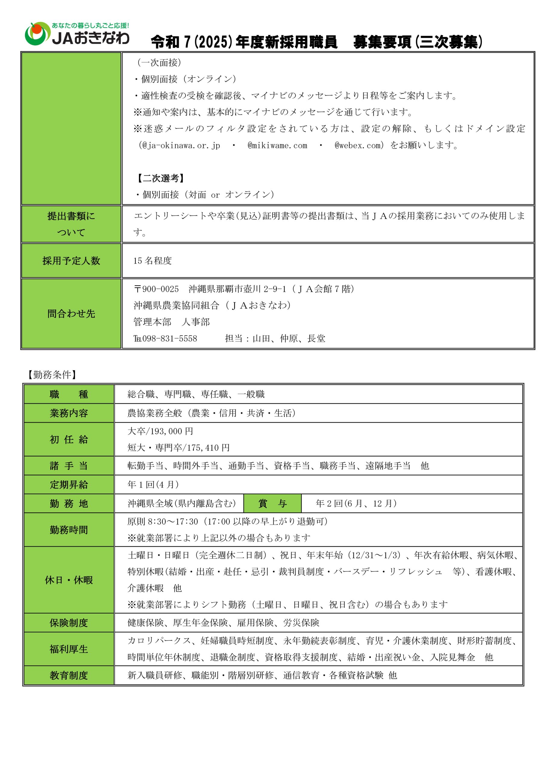 令和7(2025)年度 職員募集要項(大学・短大・専門卒)