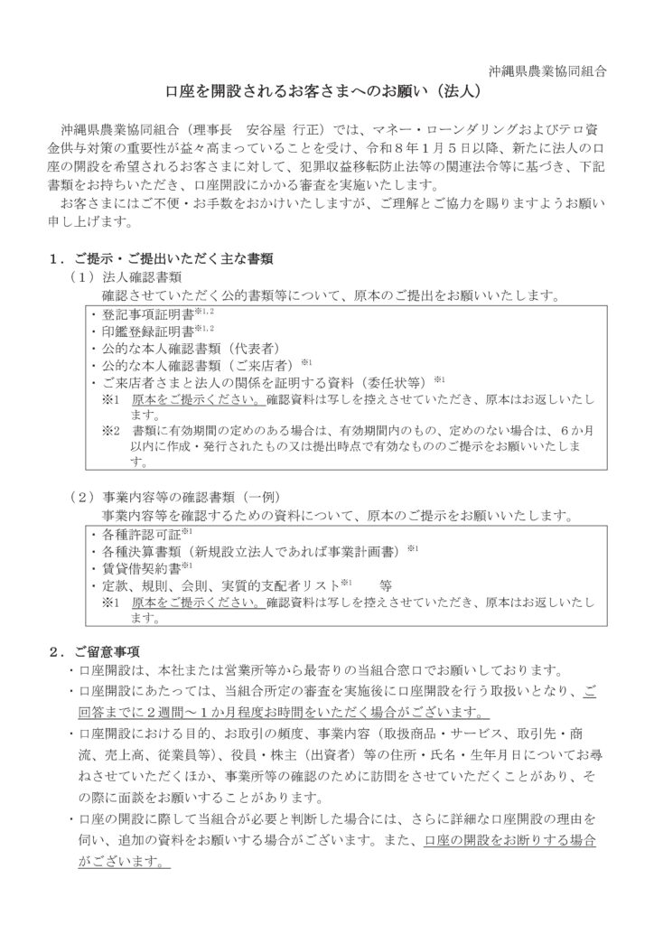 口座を開設されるお客さまへのお願い(法人)
