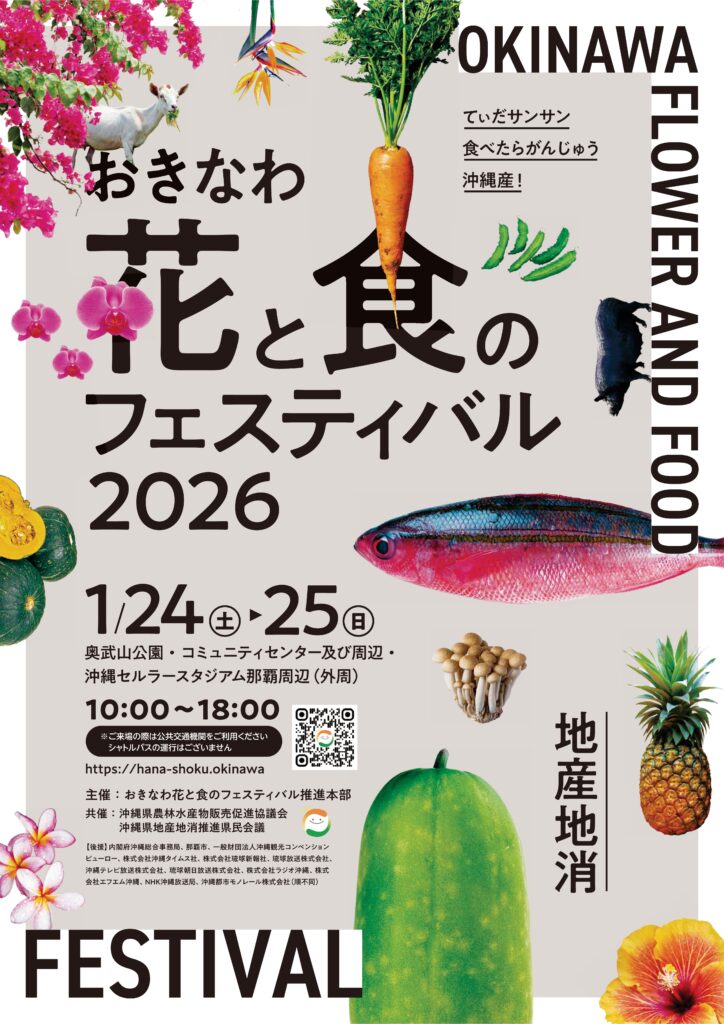 沖縄県の農林水産業に対する県民の理解を深め、県産農林水産物の消費拡大及び生産振興を図ることを目的として「おきなわ花と食のフェスティバル2026」を開催いたします。ぜひご来場下さい!